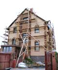 Можно привести пример, как из подобного строения был сделан добротный коттедж. В данном случае фасад был качественным, но дом - без архитектурных изысков и, к огорчению хозяев, холодный. Кроме того, заказчик хотел повысить функциональность коттеджа за счет его расширения. Архитектор удачно решил все поставленные задачи. В одной пристройке разместили бассейн, другая легкая конструкция стала зимним садом. Стены в два кирпича, которые не соответствовали элементарным нормам теплопроводности, «поправили» современным фасадным утеплением - слоем пенопласта (пенополистерола), армированием, затем слоем штукатурки. По желанию заказчика здание должно было ассоциироваться со средневековой европейской постройкой, поэтому в качестве внешней отделки был выбран искусственный камень, а окна украсили резные каменные наличники. Этой же стилистической задаче отвечала надстроенная башня. Гармонизированные пропорции, удачная внешняя отделка преобразили коттедж, а современные технологии утепления сделали его пригодным для проживания в любое время года.