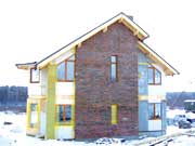 Впрочем, достоинства дома, в котором придется жить вам и вашим близким, не могут заключаться в одной лишь экономии (мы, мол, задешево дом построили!) или в удобстве для рабочих. Жить надо в здоровой среде, и панельно-каркасная технология полностью соответствует современным требованиям по этой части. Фактически получается деревянный дом, который не подвержен усадке, очень теплый. Допускается любой вариант внешней и внутренней отделки. Декоративный кирпич, природный камень, сайдинг, вагонка - нет, пожалуй, такого отделочного материала, который не мог бы использоваться при панельно-каркасной технологии. Можно реализовать практически любой архитектурный проект и воплотить в жизнь любой запрос заказчика. Строение получается крепким и надежным, но при этом - не очень тяжелым, а потому на устройстве фундамента (если сравнивать с тем же строительством из кирпича) тоже можно сэкономить немало.