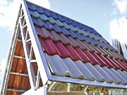 Для производства металлической черепицы используют высококачественную оцинкованную сталь толщиной 0,45-0,50 мм, что обеспечивает кровле пластичность и одновременно устойчивость к возможным деформациям. Сталь вначале проходит стадию профилирования - на специальном оборудовании ей придается нужная форма, а затем покрывается слоем полимера. Это, конечно, упрощенно (для описания всех технологических подробностей просто нет места): в реальности лист металлочерепицы представляет собой своего рода "слоеный пирог", и каждое слагаемое такой многослойной структуры выполняет свою функцию.