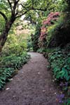 Впрочем, как уже говорилось, тропинки вашего сада не похожи друг на друга. Травянистые или песчаные, а также посыпанные галькой или мульчей, они могут иметь плавный переход к окружающим их клумбам и грядкам. Тогда кустистые и почвопокровные растения, разрастаясь, закроют бордюр, придавая границам неясность очертаний и естественную прелесть, словно рожденную самой природой.