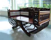 Ручная работа по старинным технологиям исключает возможность появления абсолютно одинаковых вещей. Даже похожие на первый взгляд гарнитуры при ближайшем рассмотрении оказываются абсолютно разными. Кроме того, сборка и обработка вручную - это еще и гарантия прочности и долговечности. Тайская мебель чрезвычайно продумана. Например, осевые детали стульев, плавно переходящие из спинки в ножку, выточены из цельного куска и пропущены сквозь раму сиденья. А если откинуть крышку бюро, то снизу выдвигается панель, поддерживающая столешницу. И как бы вы на нее ни давили, она не только не сломается, но даже не покачнется.