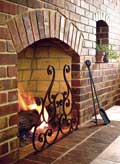 Стандартный набор всех необходимых каминных инструментов – колосниковые решетки для подержания горящих дров, дровницы, каминные ограждения, защитные экраны, каминные дверцы, совки, кочерги, щетки, щипцы, метелки – можно купить. В одной коробке, заводской штамповки. Но это – совсем не то, это – ширпотреб. Лучше заказать у талантливого кузнеца, и тогда каждый отдельно взятый предмет, как музыкальная нота в созвучии с другими, станет участником единого ансамбля. Мастер, если это потребуется, скрутит железо в косичку, завяжет в узел, изогнет в петлю, украсит его завитками, листьями дуба с желудями… Словом, каждое его действие будет напоминать мазки живописца по полотну.