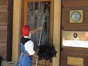 Разумеется, требуют очистки и окна с фасадами, особенно в нашем питерском климате. Работники "КмК" оказывают и такие услуги: фасады моются с помощью "водяных пушек", не повреждая при этом штукатурку, а окна и стеклянные поверхности - даже самые труднодоступные - приведут в должный вид работники уборочной фирмы, имеющие навыки работы в промышленном альпинизме. То же самое касается снега и сосулек.