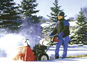 Больший комфорт и удобство уборки снега предоставляют пользователям специализированные агрегаты - снегоуборщики. Но они выпускаются пока только зарубежными фирмами. Так, фирма "MTD" (США), мировой лидер по производству садовой техники, изготавливает целую серию снегоуборщиков из 11 моделей разной мощности - на все случаи загородной жизни. Для очистки небольших участков достаточно легкого, не самоходного одноступенчатого снегоуборщика с обрезиненными шнеками. Мощность его двигателя 3-5 лошадиных сил. При работе такой "дворник" толкают перед собой, поэтому и применяется он преимущественно для уборки рыхлого снега. Дальность выброса до 5 метров. Несомненные достоинства - обрезиненные шнеки, которые не портят плиточное покрытие площадок и дорог, и невысокая цена.