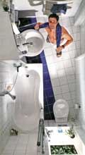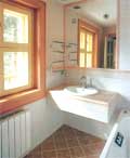 А нужны ли вообще радиаторы в ванной? Первое современное решение, которое сразу приходит на ум, - устройство теплого пола. Только ведь нужно еще и как-то сушить всякие тряпичные мелочи. Но в этом нет ничего сложного: электрические и трубные системы, используемые в «теплых полах», можно смонтировать и на стене, облицевав ее потом плиткой, на которой закрепить крючки, вешалки или кронштейны. Решение это простое, радикальное, но не без недостатков: прежде всего, там, где обогреватель закрыт, тепло уходит в стены, рассеивается и теряется без всякой пользы, кроме того, упрятав все в стены, мы теряем возможность украсить помещение таким достижением современности, как дизайн-радиатор!