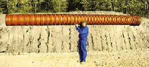 До последнего времени применение полипропилена РР для систем наружной канализации было экономически нецелесообразно из-за большого расхода материала, т.к. основным требованием при применении пластмассовых труб для систем наружной канализации является необходимое значение кольцевой жесткости.Главный недостаток пластмассовых труб по сравнению с металлическими и бетонными - их неспособность воспринимать большие горизонтальные нагрузки. Это очень ограничивало область применения пластмассовых трубопроводов, т.к. при безнапорной системе большое значение имеет уклон трубопровода, в результате чего на протяженных участках происходит большое "заглубление" трассы. Ко всему прочему, при прохождении трубопроводов через дороги и нагруженные участки необходимо прокладывать их в кожухах или специальных гильзах, что приводит к удорожанию работ, особенно при укладке трубопроводов в черте города. Раньше эту проблему решали путем увеличения толщины стенок труб, что вело к удорожанию материалов. Но за последние годы очень интересной является разработка системы трубопроводов из полипропилена с профилированной двойной стенкой.