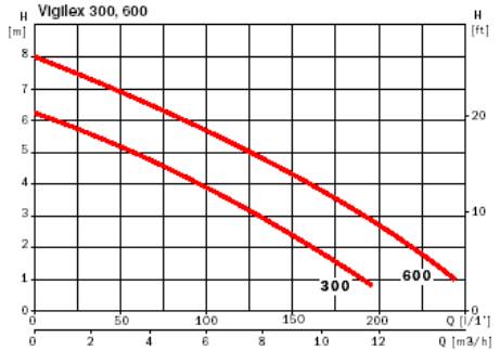 Другая новая модель Vigilex 300, 600 для откачки сточных и грязных жидкостей с со-держанием твердых частиц во взвешенном состоянии размером до 24 мм. Применяются в быту и промышленности для отвода сточных вод с волокнистыми включениями, откачка грязной воды из затопленных подвалов и водоемов, отвод сточных жидкостей от умывальников, стиральных машин и моечного оборудования. Особенности данных моделей в испытанной системе "Vortex" с отведенным вверх ра-бочим колесом, насосы могут работать с грязными жидкостями, содержащими твердые и во-локнистые частицы во взвешенном состоянии без какой-либо опасности засорения рабочего колеса. Рабочее колесо смонтировано непосредственно на удлиненный вал мотора. Самосмазывающиеся подшипники снимают аксиальные напряжения с вала и обеспечивают бесшумную работу. Герметичность мотора обеспечивается двойным уплотнением из NBR.