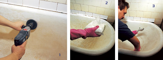 1. Механическая зачистка поверхности ванны 2. Обезжиривание поверхности 3. Удаление обезжиривающего состава