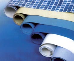 Пленка ПВХ - новое покрытие для бассейнов. Этот легкий материал - хороший гидроизолятор, дешевле керамической плитки и мозаики. Толщина - от 1 до 1,5 мм. Обычно состоит из четырех слоев. Между вторым и третьим слоем проложена ткань-сетка из полиэстерола или кевлара (очень прочного синтетического материала, из которого, кстати, шьют пуленепробиваемые жилеты). Пленка хорошо переносит воздействие ультрафиолетовых лучей и химикатов. Это покрытие не требует специального ухода, легко чистится, к нему не <цепляются> микроорганизмы. Верхний слой пленки - шершавый, на нем не поскользнешься.