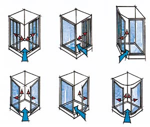 И еще: покупая кабину, захватите план своей ванной комнаты с точными размерами. Тогда продавец не только подскажет, сколько места займет выбранная душевая кабина, но и посоветует, какие створки лучше выбрать и сколько они, в свою очередь, займут места в раскрытом состоянии. Кстати, фирмы-производители, как правило, делают и поддоны, и дверки к ним. Но это вовсе не означает, что нужно покупать и створки, и поддон одной фирмы. Поэтому некоторые солидные производители предоставляют полный перечень того, какие створки подходят к каким поддонам других фирм. Когда пойдете покупать, попросите у продавца такой список - очень пригодится.