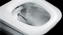 Как выяснилось, есть. Недавно на рынке появилась такая новинка, гораздо более удобная, чем обычная крышка-биде, - тот самый электрический унитаз. Правда, и цена его не 200-300, а 3500-4500$. И производят его только две фирмы - <Геберит> (Geberit) и <Лауфен> (Laufen).