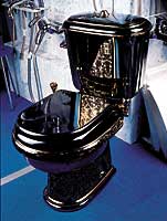 В истории биде, помимо самого курьезного названия, найдутся и другие забавные эпизоды. Свидетельство тому - каталог фирмы <Карл Фаберже> всемирно известного российского придворного ювелира. Среди тысячи причудливых изделий - от пасхальных яиц до ювелирных украшений - в этом каталоге можно увидеть изображение солонки в виде... миниатюрного биде. Само оно было сделано из золота, сиденьице с крышкой - из нефрита, а крышка и спинка декорированы прозрачной опаловой эмалью, имитирующей парчу. К тому же спинку окаймляли небольшие жемчужины. Можете представить себе процесс добывания соли из такого предмета: ставим солонку на стол, открываем крышечку, миниатюрной ложечкой достаем соль...