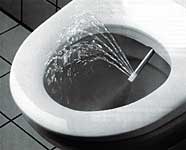 Разумеется, существуют и более сложные и дорогие устройства - по 400-500$. Есть, например, крышка-биде с электронным управлением. Сбоку на унитазе висит небольшой блок управления с нагревательным элементом. Допустим, вы решили включить устройство. Для этого совершаем несложную манипуляцию - нажимаем несколько кнопок на пульте управления, после чего из-под крышки выезжает маленькая трубочка, подающая воду: И ваше мини-биде готово к употреблению.