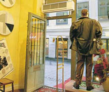 Производительность по воздуху или прокачка является основным параметромлюбой завесы. От производительности зависит скорость воздушного потока и,соответственно, оптимальная высота установки. Например, для защиты стандартногодверного проема шириной 0,8:1,0 метр и высотой 2,0:2,2 метра требуется завеса спрокачкой 700:900 м3/ч. В этом случае скорость воздушного потока на выходе завесысоставит 6:8 м/с, а на уровне пола - 1,5:2,0 м/с. Однако завесы с такой прокачкой стоят500:700 долларов и часто в целях экономии устанавливают аппараты с меньшейпроизводительностью, предназначенные для защиты проемов высотой до 1,5 метров (окнокассы, окно выдачи товара и т.п.). В этом случае через нижнюю часть дверного проема будетпроникать холодный воздух, и желаемый эффект от применения тепловой завесы будетдостигнут лишь частично. Заметим, что при наличии тамбура применение завесы с низкойпрокачкой может быть вполне оправдано - двойные двери создают дополнительную преградухолодному воздуху и позволяют использовать менее дорогую завесу.