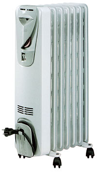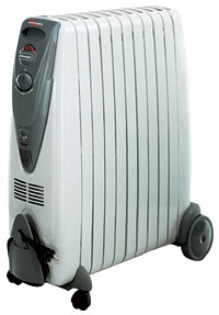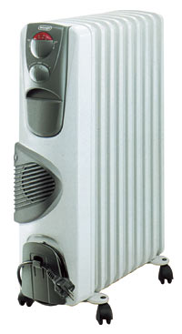 Масляный радиатор из серии Н 19 компании <Де Лонги> (De Longhi) (64$)* - первый шаг специалистов к совершенствованию обогревательных систем. Этот радиатор имеет температуру поверхности 110°С. Такой результат удалось получить благодаря специальным термическим щелям на <ребрах> прибора. Ведь раньше, в подобных приборах первого поколения, где грани были сплошными, температура достигала 150°С.
