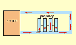 Естественная (гравитационная) циркуляция возможна в небольших системах за счет разности плотностей холодной и горячей воды.