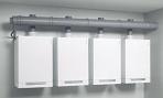 До четырех Vitodens 300 с каскадным контроллером и специальной системой отвода отходящих газов могут покрыть расход тепла на отопление в 264 кВт. В отличие от других систем каскадная система отвода отходящих газов Viessmann работает по принципу избыточного давления; при этом она позволяет даже при 264 кВт выдержать оптимальный для монтажа диаметр трубы всего 100 мм. Устройство предохранения от опрокидывания тяги срабатывает автоматически и поэтому является наиболее надежным - не требуется дополнительного электрооборудования и датчиков.