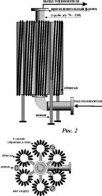 Для реализации больших мощностей применяется уже знакомая по ТЭНовым котлам большой мощности конструкция "револьверного" типа (рис. 2).