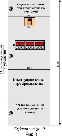 В этой конструкции через общие соединительные коллектора вварено 6 секций ("бубликов") с обмотками. Теплоноситель подается снизу, через нижний соединительный коллектор, равномерно расходится по секциям, нагревается и выходит сверху через верхний соединительный коллектор. На котел также можно одеть кожух с теплоизоляцией. Работой котла управляет преобразователь шкафного исполнения на тиристорах или IGBT-транзисторах (рис. 3).