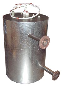 Рис. 4. Индукционный котел мощностью 300 кВт со следующими техническими характеристиками: диаметр с теплоизоляцией и кожухом - 700мм, высота - 1м, вес - 250 кг, КПД - 97 %.