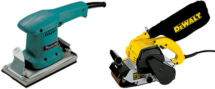 Предназначены для быстрой шлифовки больших поверхностей. Довольно шустро снимают верхний слой материала - дерева, пластмассы, металла и др. Рабочий инструмент - шлифовальная лента, так же, как и в вариошлифователе. Этот инструмент в первую очередь необходим профессионалам - строителям и ремонтникам, хотя выпускается и для любителей. Вот несколько примеров.