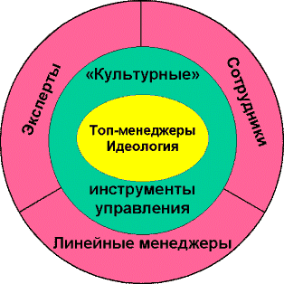 Инструменты управления - используются для формирования и изменения корпоративной культуры, в частности передачи идеологии сверху вниз.