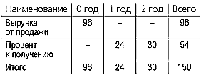 Предположим, что банк выдал кредит на покупку оборудования под 25% годовых. Руководство компании оценивает кредитоспособность покупателя на том же уровне, что и банк. Тогда распределение выручки по годам и видам будет выглядеть следующим образом (см. таблицу).