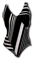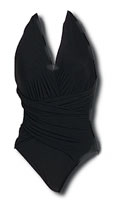 При выступающем животике вам нужен купальник со вставкой-драпировкой или рельефными швами-деталями. Подойдет и глубокий узкий вырез. Если у вас нависающий животик, выберите светлый низ с вертикальными полосками или швами. Подойдут также купальники со строгим геометрическим рисунком по бокам.