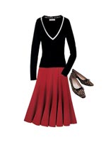 •Джемпер . Лучше всего смотрятся джемпера с вязкой-резинкой хотя бы в области талии. Откажитесь от свободных мешковатых свитеров. Особенно плохи свитера с широкими полосами на талии или бедрах - они привлекают внимание к этим зонам и в то же время значительно полнят их.