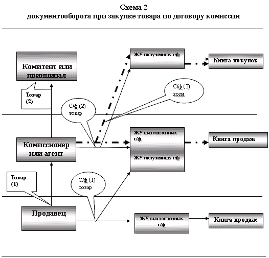 Порядок документооборота при продаже товаров по договору комиссии, агентскому договору, мы изобразили в схеме 1.