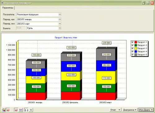 чтобы найти причину явления, рассматривая его в разных ракурсах. Поэтому «Контроллинг» располагает инструментарием для проведения такого анализа: например, для построения перекрестных таблиц (OLAP-кубы), диаграмм и графиков(Рис.2).