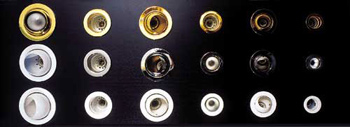 Как правило, корпус точечных светильников изготавливается из металла, стекла, латуни и термопластика. Особый шарм светильникам придают специальные покрытия – полированная латунь, матовая латунь, хром, матовый хром, черный хром, бронза. На нашем рынке есть светильники с корпусом самых невероятных цветов, к примеру, можно установить светильники из цветного стекла. На белом фоне подвесного потолка очень оригинально и стильно смотрятся «светила» изумрудного или бирюзового цветов. Любителям замысловатых форм фирмы предлагают ввинтить в потолок конструкции с плафонами в виде спиральки, треугольника или даже сосульки. Естественно, чем замысловатее и круче светильник, тем он дороже. Можно даже принести эскиз и заказать расцветку и форму по индивидуальному заказу. Но не забудьте: если вы заказываете светильники нестандартного цвета, каждый автоматически дорожает на 25%.
