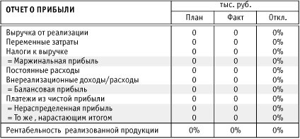 Отчет о прибыли необходим для оценки рентабельности текущей деятельности компании. Принципиальным в отчете о прибыли является разделение затрат на переменные и постоянные. Это необходимо, чтобы понять, как будут изменяться результаты деятельности компании при изменении объемов производства.