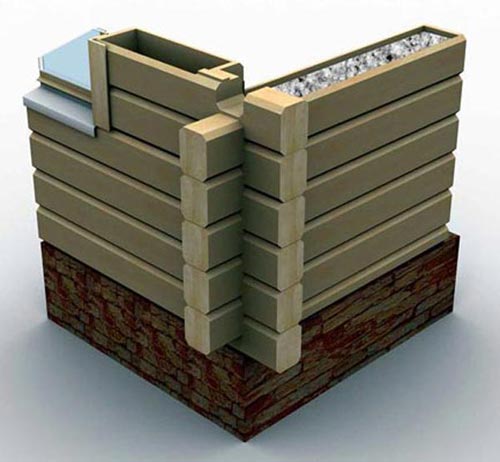 1. Наружные стены из профилированного клееного бруса с прокладкой межвенцового утеплителя и скреплением деревянными нагелями