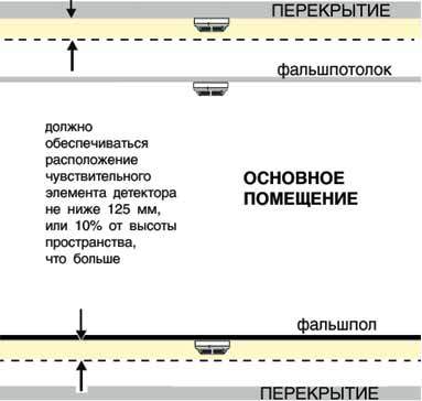 Во всех других случаях датчики должны быть установлены ниже фальшпотолка, и если необходима защита запотолочного пространства, дополнительные датчики должны быть установлены на основном потолке в запотолочном пространстве.
