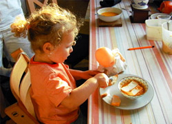 Кроме того, не следует позволять малышу баловаться за столом. Он должен понимать, что прием пищи - это не игра. А если он все же продолжает вертеться и никак не хочет останавливаться, то не нужно на него кричать, он начнет плакать и толку от этого не будет. Просто необходимо убрать от него еду и отпустить побегать. Когда он действительно захочет есть, то придет сам.