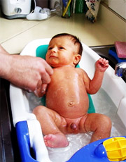 Прежде чем купать малыша, необходимо тщательно подготовиться к этой процедуре. Помимо ванночки и термометра для воды, маме необходимо: надеть на себя фартук, чтобы не намочить одежду, положить рядом с собой мыло, детский шампунь, махровую салфетку, полотенце, вату для удаления воды из ноздрей и ушей младенца, игрушки для купания, лосьон или детскую пудру, вазелин, распашонку, пеленку, ночную рубашку.