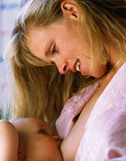 Можно опереться на локоть, чтобы было удобнее. Когда малыш почувствует у рта сосок, он постарается ухватить его губами. Иногда это не получается с первого раза, и ребенку нужно помочь. Он принимает за сосок все, что касается его лица, и обычно быстро находит губами то, что ему нужно. Ухватив сосок, ребенок иногда утыкается носом в грудь матери, и ему становится трудно дышать. Тогда нужно прижать грудь пальцем сверху. Со временем, в больнице или уже дома, женщина, как правило, находит самую подходящую для нее позу при кормлении. Некоторые садятся прямо, некоторым удобнее прислоняться к чему-то спиной. Можно даже кормить ребенка сидя в кресле-качалке, если подлокотники не слишком высокие и на них удобно класть руку. Можно и подложить под локоть или под спину мягкую подушечку. В общем, неважно, какую именно позу женщина выберет. Главное, чтобы было удобно держать и кормить ребенка, чтобы мать от этого не слишком уставала и не испытывала болей в спине. Нужно стараться сидеть так, чтобы мышцы были расслаблены. Постепенно женщина привыкает к кормлению и даже может дремать во время него. Особенно часто так бывает ночью или ранним утром. На самом деле, это опасно, потому что женщина во сне, сама того не замечая, может «навалиться» на ребенка так, что ее грудь или плечо будут мешать младенцу дышать. Поэтому многие специалисты советуют кормить детей сидя или полусидя не только ночью, но и днем, когда матери тоже может сильно хотеться спать. За женщиной, кормящей лежа, постоянно должен кто-нибудь присматривать. На лактацию - выделение молока - влияет настроение и душевное состояние женщины. Если она встревожена или напряжена, количество молока может заметно уменьшиться. Поэтому ученые и врачи рекомендуют за 10-15 минут до начала кормления прилечь, закрыть глаза и постараться отвлечься от всех неприятных мыслей, думая о чем-нибудь хорошем. Можно почитать книгу, послушать спокойную музыку.