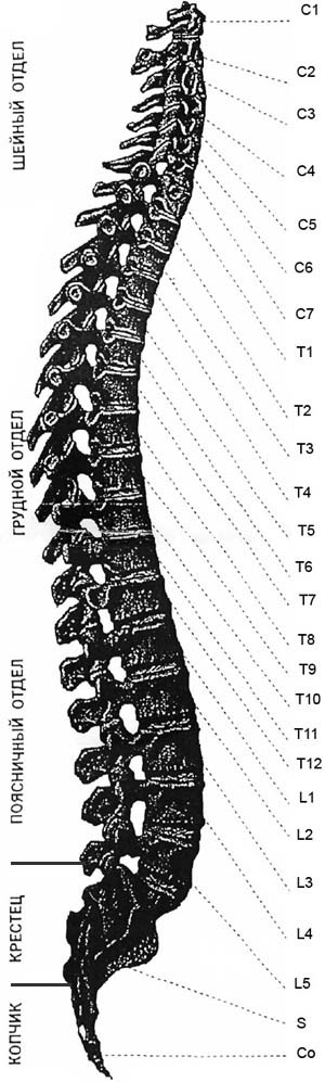 Наименование позвонков , на уровне которых возможно ущемление соответствующих спинномозговых нервов: