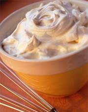 Вам потребуется: Для крема: 4 стакана сливок, 1 стакан сахара с ванилином, 12 яичных белков. Для сиропа: 1 стакан сахара, стакана кипятка. Приготовление: Сливки смешайте с ванилином, сахаром, белками и влейте в смоченную водой миску.