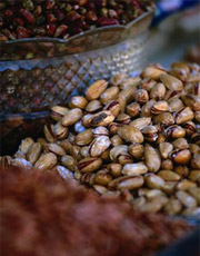 Вам потребуется: 800 г творога, стакана сахара, 3 яйца, 40 г сливочного масла, 100 г фисташек, 1 стакана сливок, ванилин. Приготовление: Творог слегка отожмите через салфетку, смешайте с сахаром, ванилином и яйцами.