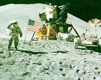 "...На первой стадии освоения космоса американцами каждый запуск и посадки на Луне сопровождали летательные аппараты инопланетян. Многое увидели и сняли на кинопленку участники полета по программе "Аполлон". Купола и своды, остроконечные крыши, высокие круглые строения, похожие на букву "Т", горнодобывающие машины, которые оставляют похожие на стежки следы на поверхности Луны, огромные или же очень маленькие космические корабли инопланетян — всё это отчётливо видно на снимках".