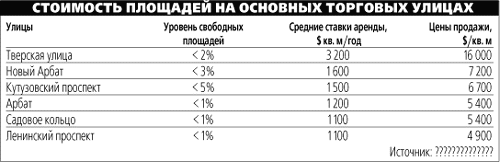 Бурный прирост современных торговых площадей в столице продолжается, и многие аналитики предсказывают обострение конкурентной борьбы между торговыми центрами, в которой непрофессионально организованные или неудачно расположенные комплексы неизбежно начнут терять арендаторов и снижать арендные ставки. Хотя общая экономическая ситуация остается благоприятной для сектора розничной торговли и, соответственно, для выходящих на рынок новых проектов - но только до тех пор, пока их не станет слишком много. В то же время арендовать отдельные магазины на ведущих торговых улицах города почти нереально.