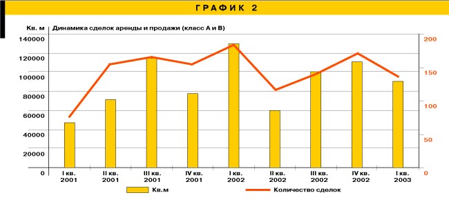 Специалисты отмечают, что в прошлом году наблюдался существенный рост числа сделок купли-продажи офисных зданий и помещений. При этом стоимость продаж офисной недвижимости в 2003 году по сравнению с предыдущим годом сохранилась на прежнем уровне и лежала в пределах от $2,3 тыс. до 2,9 тыс. за 1 кв. м в зависимости от качества здания. По мнению специалистов компании Colliers International, цены продаж могут значительно различаться в зависимости от местоположения объекта, его технического состояния и коммерческих характеристик (транспортной доступности, наличия парковки, телефонных линий и др.).