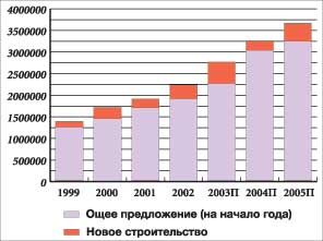 В среднем вакантными в течение года оставались от 3 до 5% зданий класса А и от 6 до 10% зданий класса В. По оценкам "Colliers", к концу 2003 года вакантными останутся 7,5-8% помещений.