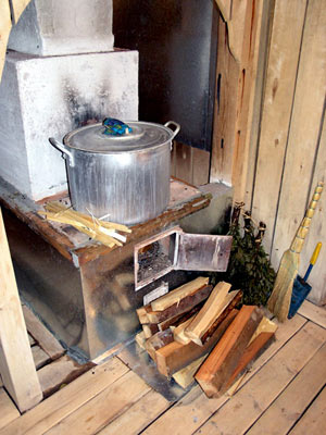 представляет собой сухую парилку, где на полках рассыпаны кедровые опилки, смешанные с лекарственными травами. Опилки и травы впитывают пот и «вытягивают» токсины из организма.