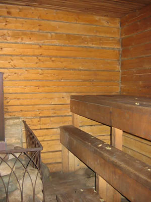 состоят из трех отделений: раздевалка, помещение первого разогрева и парилка. Такое устройство позволяет избежать резких перегрузок организма. Еще одна полезная «модификация» — вентиляция парилки. Благодаря этому воздух остается свежим, что увеличивает оздоровляющий эффект. Эта парилка была «сухой».