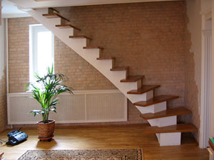 Лестницы на косоурах; здесь используются наклонные несущие балки, которые могут быть различной формы. Таким образом, косоуры могут быть, помимо прямых, округлые, зубчатые или резные.