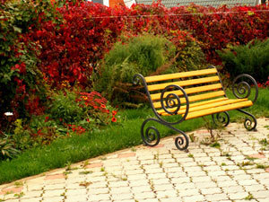 Простую деревянную скамью несложно установить самостоятельно, даже не имея особого опыта. Если Вы хотите, чтобы скамья превратилась в произведение искусства, можно обратиться в студию художественной ковки или резьбы по дереву.