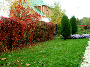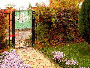 Ограда — необходимый элемент любого приусадебного участка. Она закрывает его от любопытных взглядов, защищает от ветра, препятствует посещениям нежелательных лиц. Ограда может представлять собой как обычный дощатый забор, так и живую изгородь или «чугунное кружево». Однако помните, что забор не должен быть слишком вычурным, иначе он «закроет» отделку самого дома.